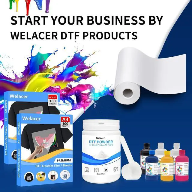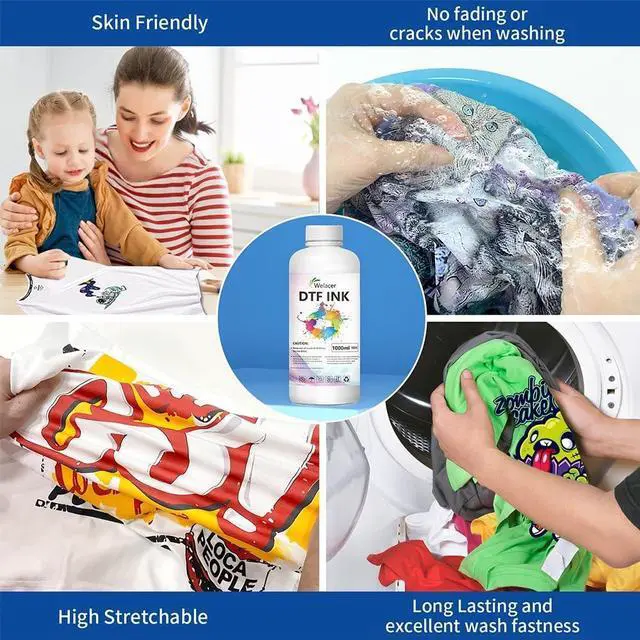 Work with Welacer DTF heat transfer film and DTF Powder. ^^ DIY YOUR IDEAS WITH HIGH EFFICENCY. Low ink consumption takes high speed printing with stable quality; 3 Level refinery DTF ink improve the printer efficiency; smoothly prints up to 358 feet. Make Your Own Unique Gifts for your family or friends on Christmas, Thanksgiving Day, Valentine's Day, Halloween etc. ^^ YOU WILL GET. The DTF transfer Ink for