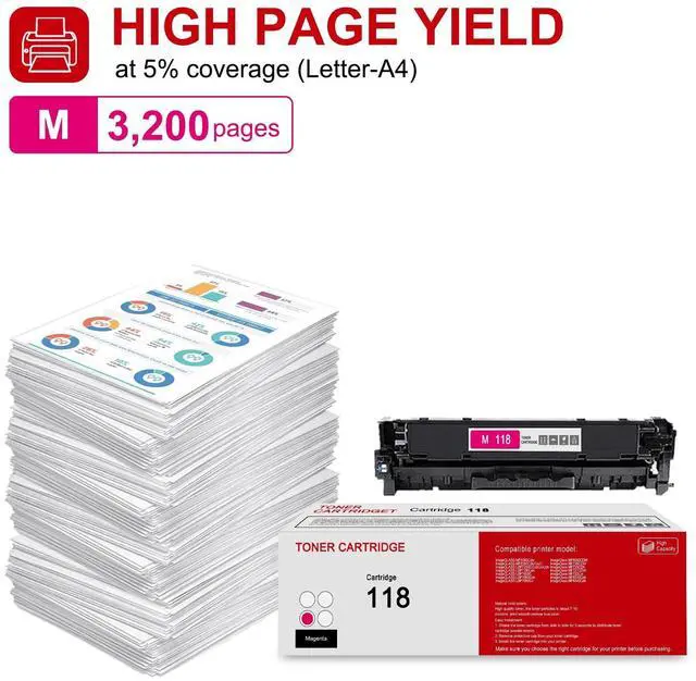 ^^ Page Yield: 3, 200 pages per 118 Magenta Toner Cartridge at 5% coverage. ^^ Compatible for