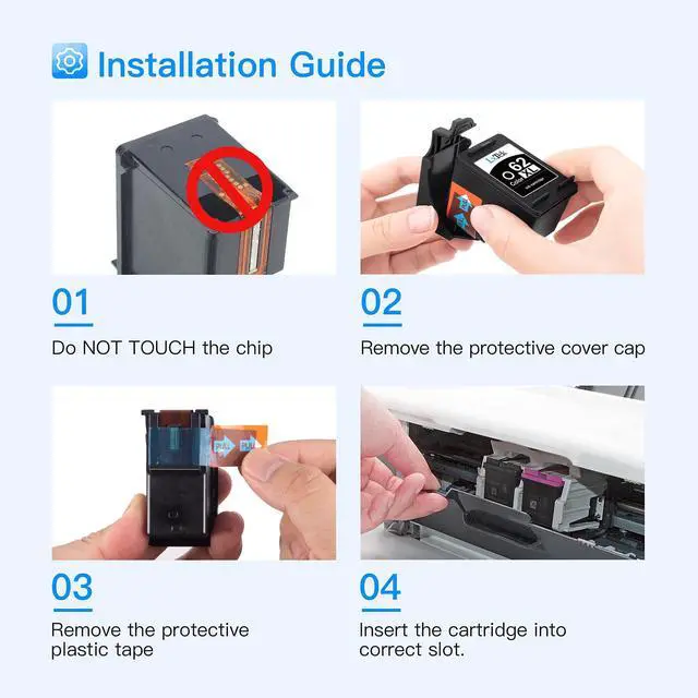 Accurate Ink level: 62XL 62 ink cartridges are conveniently equipped with a smart chip to ensure full working compatibility with your printer ^^