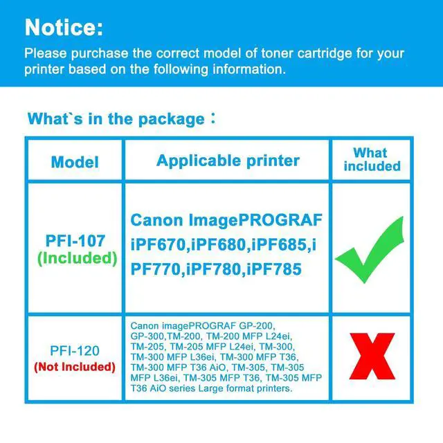 ^^ Excellent Quality: LCL PFI-107 has excellent reliability, easy installation and use, meeting all your office and home printing needs. Enjoy its reliable performance whenever you need it.