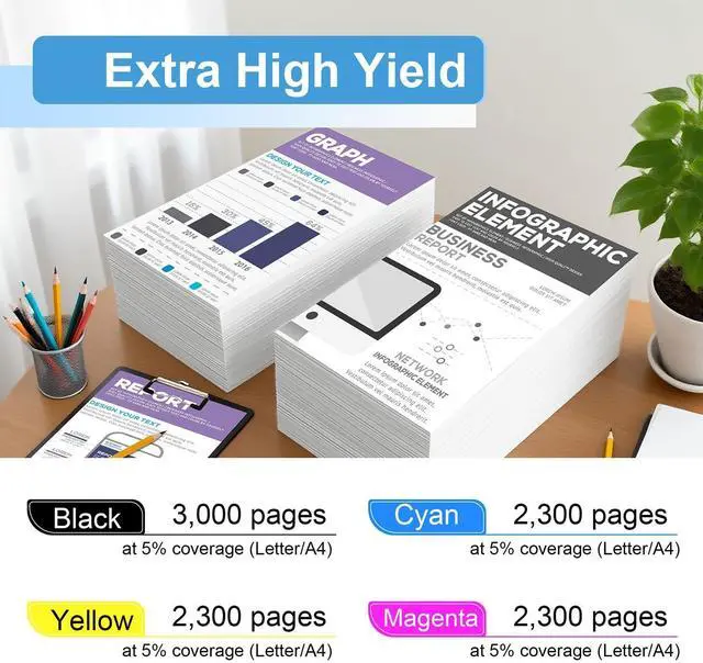 High Page Yield: the high page yield for 4 pack TN229XL color toner cartridges set is up to 3000 pages per pack(at 5% coverage/Letter A4) ^^
