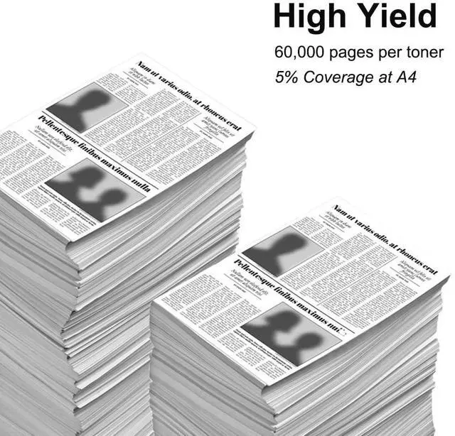 ^^ High Page Yield: Up to 60, 000 pages per 56F0Z00 Black Drum Cartridge at 5% coverage.