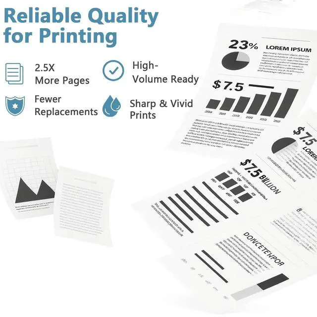 ^^ High Page Yield Fewer Replacements, More Value Print up to 1, 000 pages each black at 5% coverage (Letter/A4). Perfect for offices, schools, and small businesses needing high-efficiency printing at a lower cost per page. ^^ Professional Print Quality Delivers consistent, sharp printing while helping prevent streaks, smudges, toner leaks, and recognition errorsensuring a smooth and dependable printing experience.