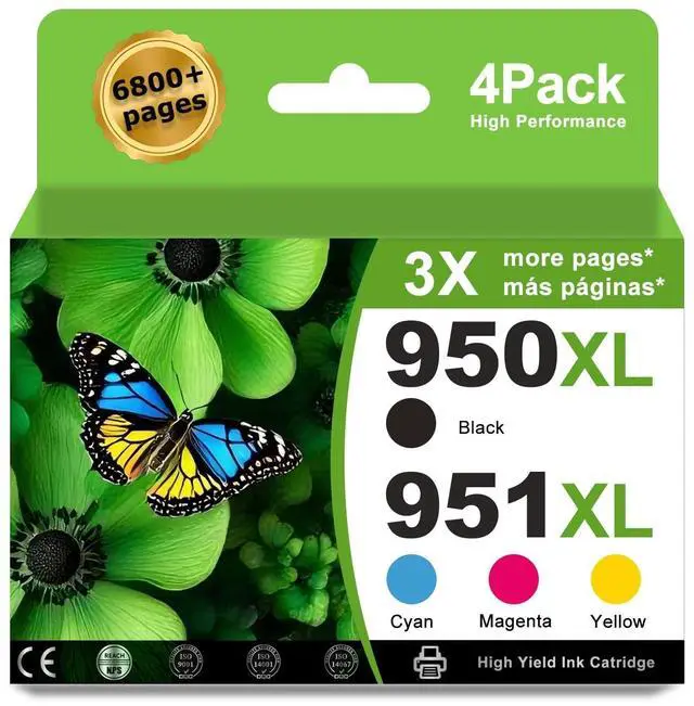 High Yield: Up to 2, 300 pages for hp 950xl black ink cartridge and 1, 500 pages for hp 951 color ink (cyan/magenta/yellow) at 5% coverage for A4 paper ^^ Upgraded