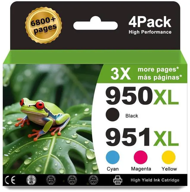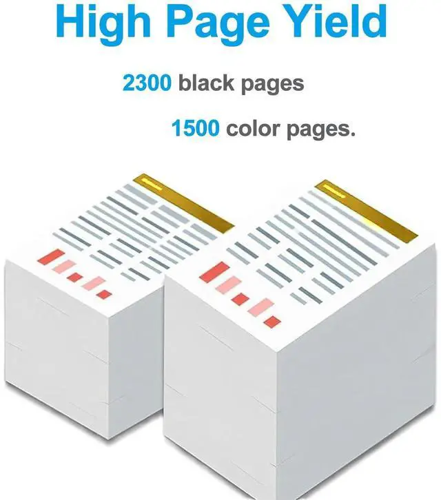 Chip Compatibility: Printer ink 950 951xl engineered with the latest upgraded smart chips, will never be blocked by your printer. Do not worry about the automatic printer firmware upgrades. ^^ Up to 2300 pages per 950 XL Black, 1500 pages per Color 951 XL, based on 5% coverage (Letter/A4) ^^