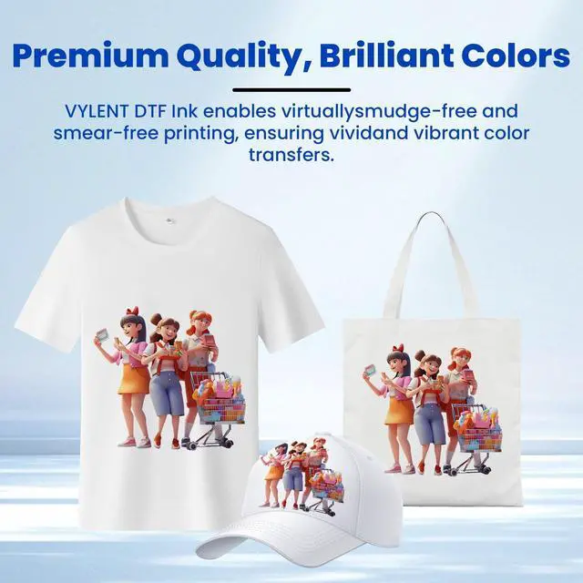 Quality Material: Vylent DTF ink is refined through a 3-level process to enhance printer efficiency. Enjoy low ink consumption and stable quality at high-speed printing, allowing you to create unique gifts for family and friends ^^ No Fade, No