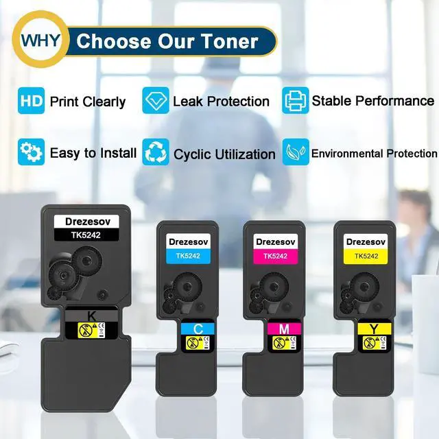 What is in the Package4 Pack TK5242 TK-5242K TK-5242C TK-5242M TK-5242Y Toner Cartridges (1Black/1Cyan/1Magenta/1Yellow).