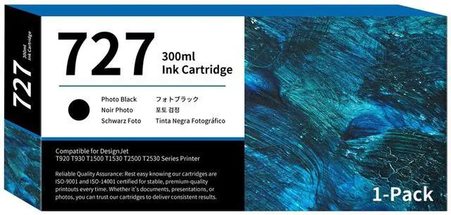 Model: 727 Ink Cartridge F9J79A Photo Black ^^ Compatible with HP DesignJet T930 T2530 T1530 T2500 T920 T1500 Printer ^^ Reliable