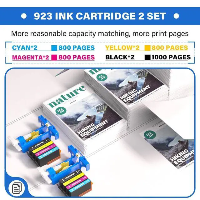 ^^ Package Includes: 923 Ink Cartridge Combo Pack 2 Sets, Black and Color Combo Pack, 2 Black, 2 Cyan, 2 Magenta, 2 Yellow; 2 Chip Removal Tool.