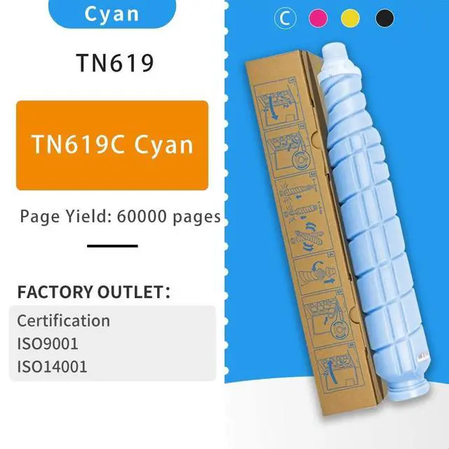 Compatible TN619 / A3VX430 Cyan Toner Cartridge Yield (approx): 60, 000 pages at 5% coverage (Letter/A4) ^^