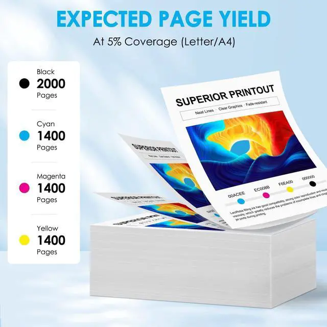 Page Yield: 2, 000 pages per Black 78C10K0, 1, 400 pages per Cyan Magenta Yellow 78C10C0 78C10M0 78C10Y0, at 5 percent Coverage of A4 letter ^^