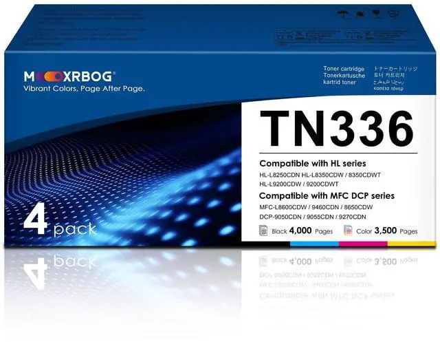 Pages Yields: TN336BK toner cartridge yields up to 4000 pages and each TN336C/M/Y cartridge yields up to 3500 pages, based on 5% coverage of A4 paper ^^