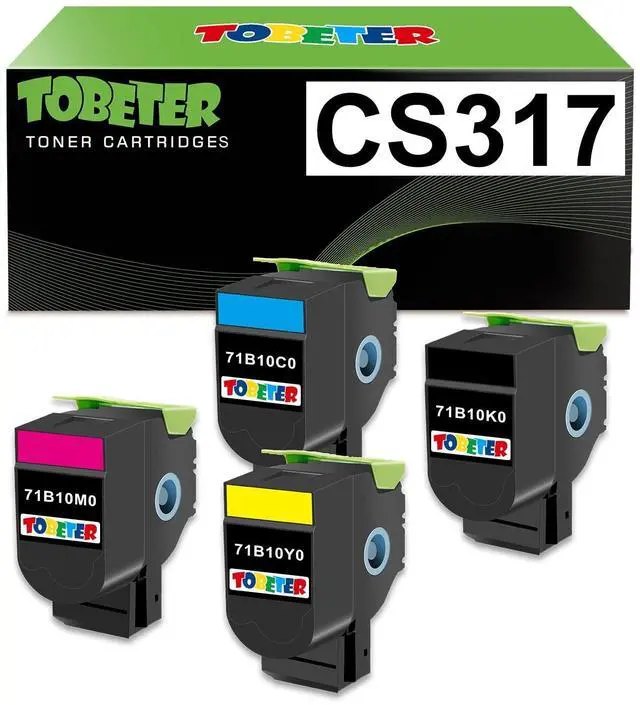 Product Name: ToBeter CS317 Toner Cartridge Replacement For Lexmark CS317 CX317 CS417 CX417 CS517 CX517 CX629 Series Printer Toner 71B10K0 71B10C0 71B10M0 71B10Y0 Toner (4 Pack, 3K/ 2.3K Pages) ^^ Compatible CX317dn Toner for Lexmark CX317dn CX417de CX517de CS317dn CS417dn CS517de CX628de CX629de Printer Toner Cartridge ^^