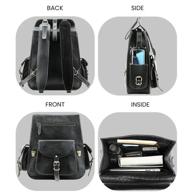 SPECIAL FEATURES: This Backpack is made of high-quality full-grain soft buffalo pebbled leather, lined with Nylon mix Fabric, and has a push clip for easy opening and closing. The adjustable buckles and top closure provide a vintage style. The interior is spacious enough for everything youll need to carry, with an internal zipper pocket for small items and valuables ^^