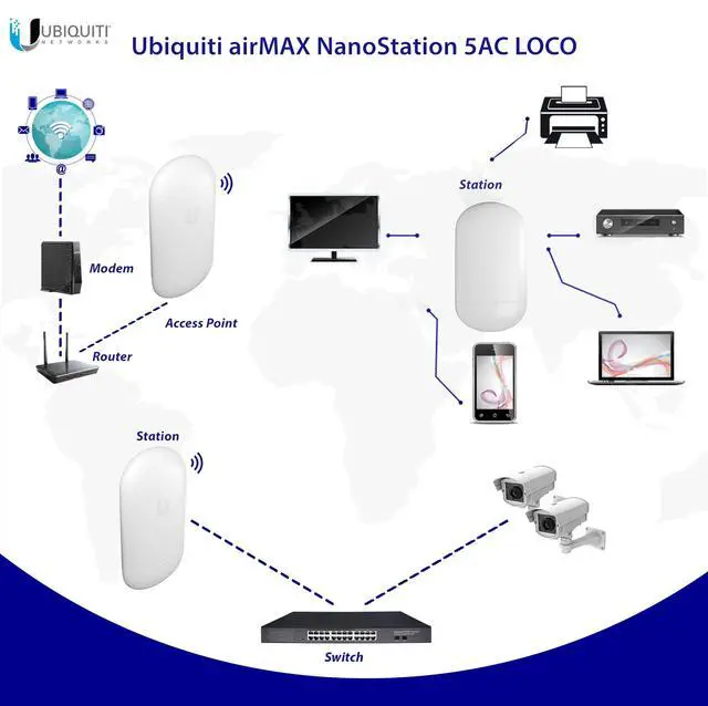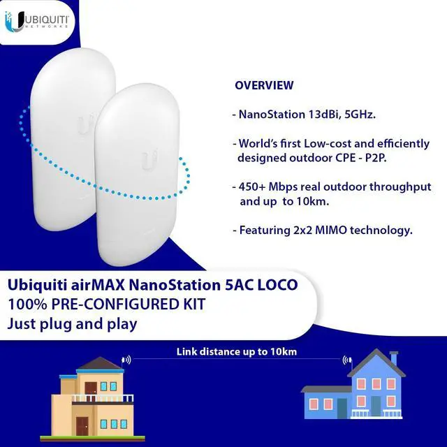 Experience the ultimate in wireless connectivity with the LOCO5AC Wireless Bridge. Pre-configured for your convenience, this high-performance device offers a powerful 5GHz connection with speeds exceeding 450 Mbps, ensuring fast and reliable data transmission for your network needs. The LOCO5AC is designed for easy plug-and-play setup, allowing you to quickly establish a robust wireless link without the hassle of complex configurations. Its advanced technology provides excellent noise immunity and long-range capabilities, making it ideal for various applications, including point-to-point and point-to-multipoint configurations. Built to withstand harsh outdoor environments, features a durable, weather-resistant design.