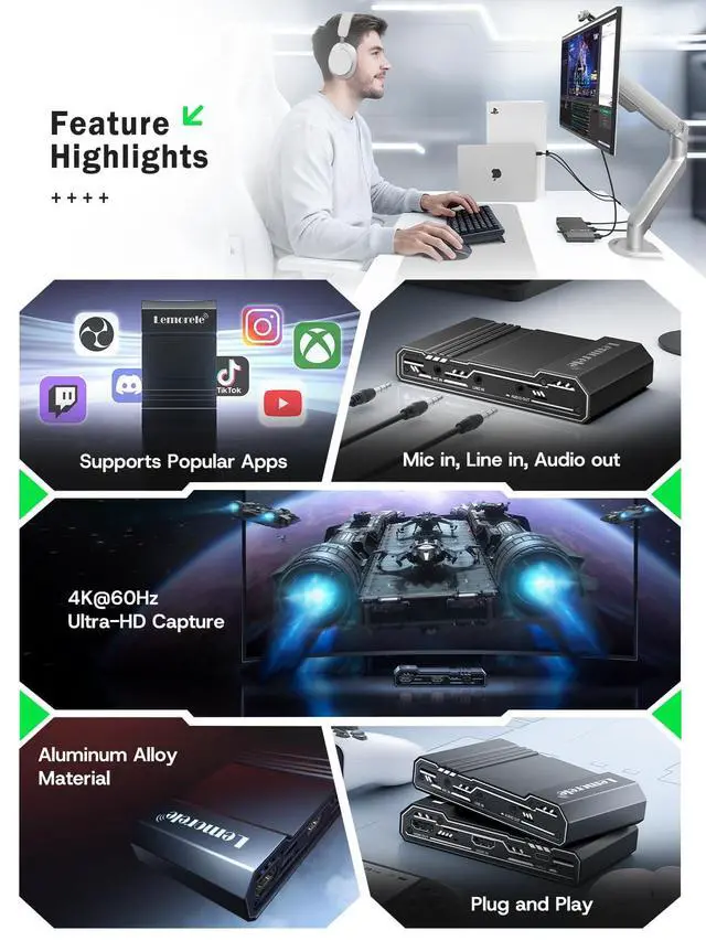 ^^ Plug-and-Play Wide Compatibility: Works seamlessly with Windows, macOS, and iPad Pro, and supports popular software like OBS Studio, Zoom, Twitch, YouTube, and more. Ready for use with PS5, Xbox Series X/S, Nintendo Switch, and DSLR cameras.