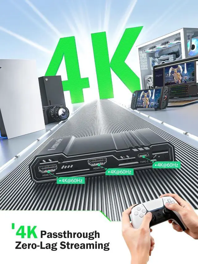 Ultra HD Capture & Pass-Through: Supports 4K@60Hz zero-lag passthrough while capturing 1080p video, delivering smooth, high-quality gameplay and live streaming without interruption. ^^ Advanced Audio Control for