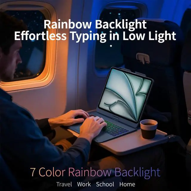 Accurate Touchpad: Featuring a multi-touch touchpad integrated into the 13-inch casing of the iPad Pro, this keyboard delivers precise responses that enhance your editing, browsing, and video playback experience. Transform your iPad Pro 13 and iPad Air 13 into laptop-like devices to boost work efficiency and unleash creativity. ^^ Ipad Air Keyboard Case with 7-color