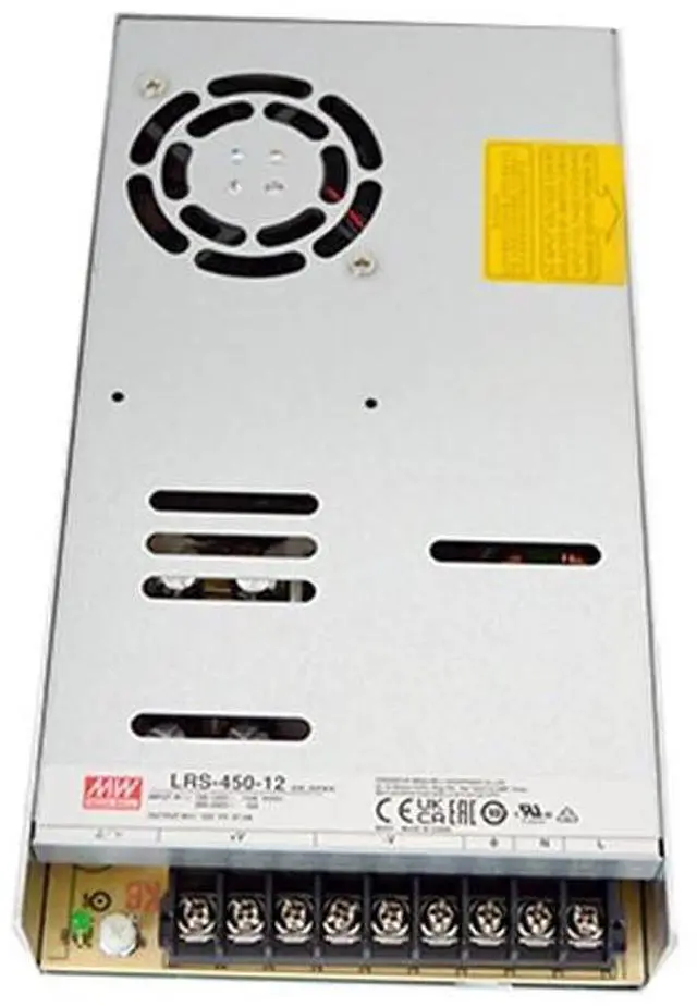 Active Power Factor Correction (PFC) further enhances efficiency and reduces harmonic distortion. The integrated fan with on/off control provides optimized cooling performance while minimizing noise levels. The LRS-450-12 is a reliable and efficient power solution for a wide range of industrial applications, including automation systems, control equipment, and instrumentation. This power supply meets international safety standards, including UL, CE, and CB certifications, ensuring compliance with regulatory requirements. Its robust design and high Mean Time Between Failures (MTBF) contribute to long-term reliability and reduced maintenance. The LRS-450-12 is designed for continuous operation in challenging industrial environments, with a wide operating temperature range of -20C to +70C and resistance to 5G vibration.