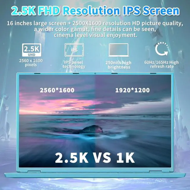 Pre-installed Latest Operating SystemDQ160 laptop comes with the latest Windows 11 Professional Edition installed, Chrome without initial configuration, permanently activated. Windows 11 System Safer and faster to respond. Backed by a 12-month manufacturer's warranty, and 24H customer support emails (If you encounter the problem that window is not activated, please feel free contact us to solve it). ^^ 16 inch 2.5K Superior Views16 inch Large size Anti-blue light eye protection screen(up to 92% screen ratio) with 16:10 aspect ratio, support 180 opening and closing, 4-side 4mm Ultra -narrow bezels and wide angle, providing a large viewing area that's allowing users to multitask and work on multiple applications simultaneously.
