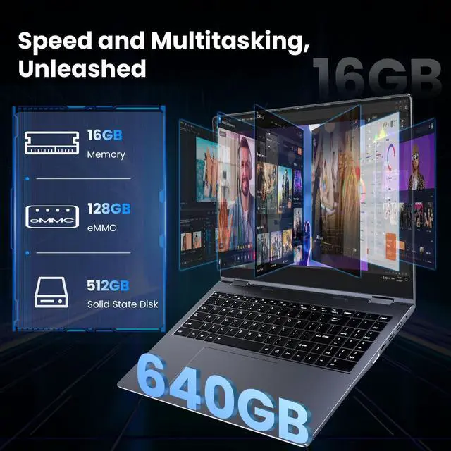 Convertible Laptop: The 2 in 1 laptop features a 360 rotating hinge, allowing for four modes of use: laptop, tablet, tent, and stand. The convertible design enhances efficiency and entertainment, making it the ideal companion for both work and play ^^ Enough