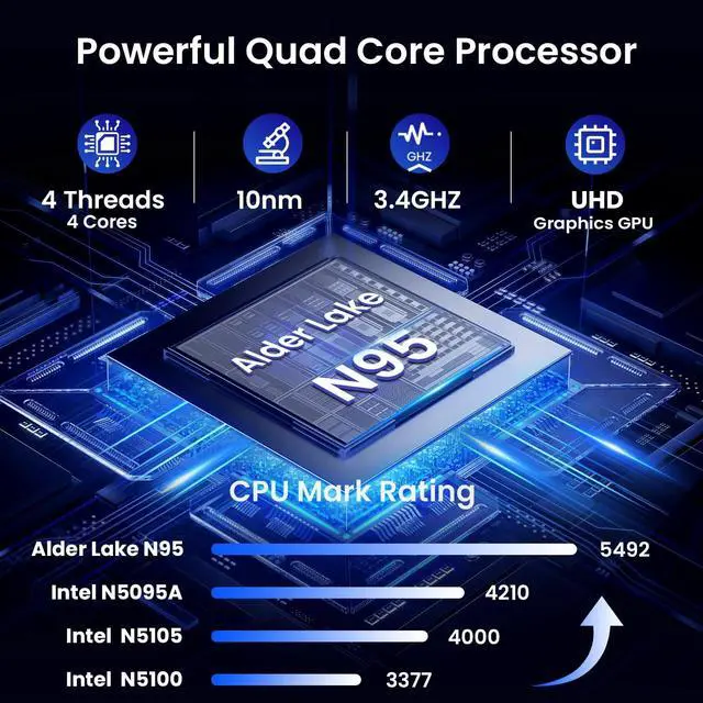 Powerful Performance: Laptop computer powered by an Celeron N95 processor(up to 3.4GH z), efficient office work, ensuring smooth performance for everyday tasks. It also features a bottom mounted fan for efficient cooling during extended use ^^