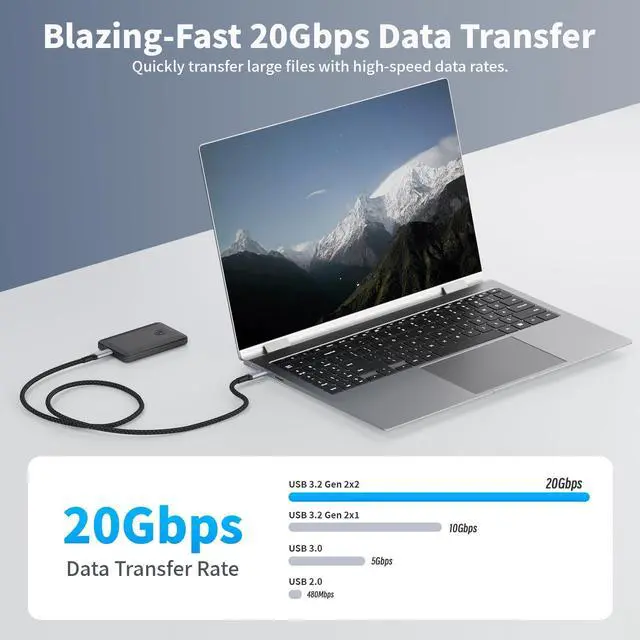 USB 3.2 Gen 2 20Gbps High-Speed Data TransferThis high-speed USB-C data transfer cable, compliant with USB 3.2 Gen 2 standard, delivers blistering 20Gbps data speedsbacking up a 10GB file in under 10 seconds. As a top-tier data cable type c, it effortlessly transfers HD movies, high-res audio, and 4K video signals. This USB-C to USB-C data transfer cable is fully compatible with USB-C hubs, docking stations, SSDs, and other USB-C devices; plug-and-play design ensures hassle-free reliability. ^^ 8K/5K/4K Ultra-Clear Video for USB-C MonitorsThe HOTUTUKI USB-C cable, a versatile data transfer cable, supports