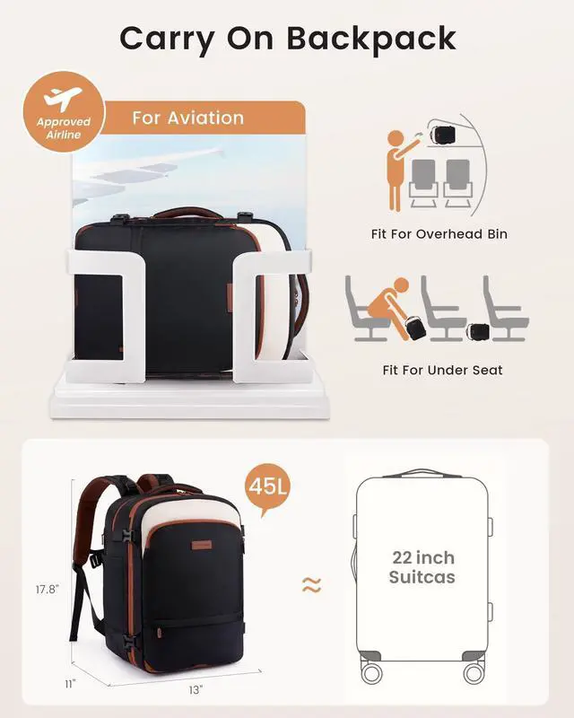 ^^ All-Day Comfort: Built to last and designed for comfort, this durable travel backpack carry on uses rugged, water-resistant fabric with heavy-duty reinforced zippersready for any trip. With breathable padded shoulder straps and supportive back panel, it stays comfortable for commuting, exploring or weekend getaways. Tough, practical and reliable, its the ideal airline personal item bag and carry on backpack for airplanes youll reach for every time. ^^ Faithful Companion for