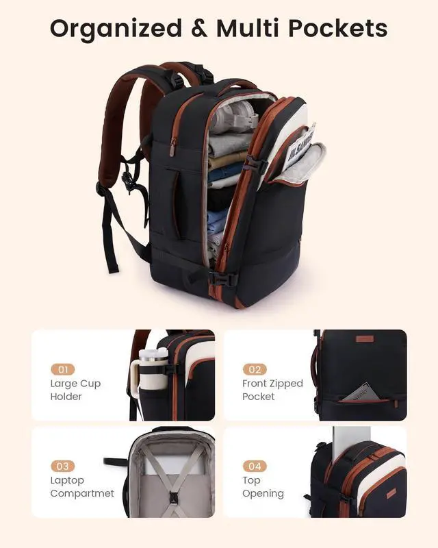 • Expansive Capacity & Smart Organization: This versatile backpack has an expandable main compartment to adjust capacity for daily commutes or short trips, making it a practical travel essentials. It features multiple handy pockets, a waterproof section and padded laptop sleeve, working well as everyday laptop backpack and reliable carry on backpack. Switch easily between a tidy daily bag and roomy travel pack, keeping your belongings neat and secure on the go.