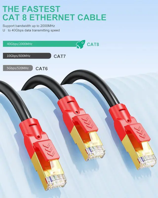 Future-Proof Your Network: Ethernet cable cat 8 provide the highest speeds currently available, while remaining backward compatible with previous Ethernet standards, making them a smart investment for future-proofing your network infrastructure ^^ Ideal for Outdoor and