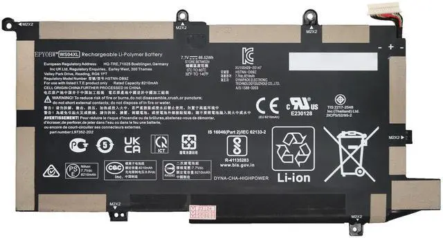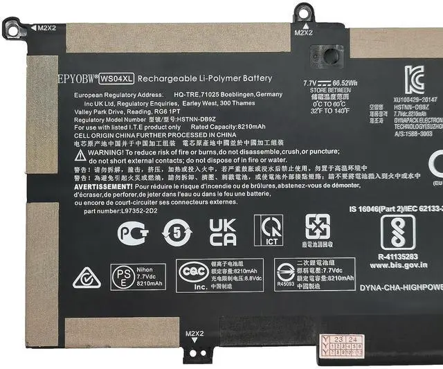 Condition: Brand New. ^^ Replace Part Number WS04XL WSO4XL HSTNN-DB9Z L97352-2D1 L97357-005 WS04066XL ^^ Compatible with Laptop Models for HP Spectre x360 14 14-ea 14-ea0002ni 14-ea0002nx 14-ea0003ns 14-ea0007na 14-ea0016ng 14-ea0023dx 14-ea0030TU 14-ea0047nr 14-ea0051TU 14-ea0052TU 14-ea0053TU 14-ea0054TU 14-ea0077TU 14-ea0079tu 14-EA0083TU 14-ea0378ng 14-ea0520na 14-ea0970nd Series; for HP Spectre x360 14t-ea000 Series; for HP Pavilion Gaming 15-EC1025LA Series ^^ Purchase SkillsPlease open the back cover of the laptop before ordering and make sure that the original battery model is consistent with the listing. After getting the battery, please install the battery correctly, make sure that the battery connector is firmly connected to the laptop motherboard, and use the original charger to charge the laptop. Discharge the new battery to 5% (not 0%), then charge and cycle 3-4 times to wake up the new battery. ^^ EPYOBW PromiseAll EPYOBW's batteries are certificated by UL/CE/FCC/RoHS. Our batteries are tested by strict quality control standards to ensure that the capacity is true, stable current, low self-discharge. And we also have short circuit, overheat, and overload protections. We are confident in the performance of replacement batteries and professional service.