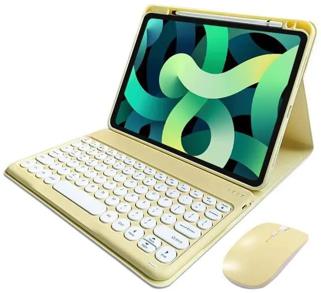 kaitesi Keyboard Case Mouse for iPad 11th Gen (A16, 2025) 11"/ iPad 10th Generation 2022 10.9" Case with Cute Round Keys Detachable Bluetooth Keyboard Cover, Yellow