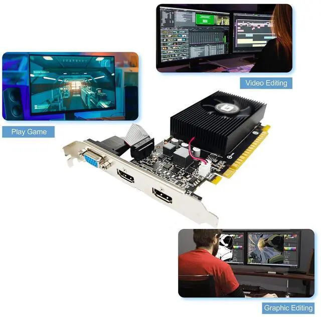 Powered by NVIDIA GeForce GT 730, 40nm chipset process with 700MHz core frequency ^^ Integrated with 2048MB DDR3 memory and 128-bit bus width ^^ Dual HDMI / VGA 3 ports output available. HDMI Max Resolution-2560x1600, VGA Max Resolution-2048x1536 ^^ Support DirectX 11, OpenCL, CUDA, PhysX and OpenGL 4.6 ^^ Original half height bracket matches with the low profile brackets make the Glorto GeForce GT 730 graphics card fit well with all PC tower, small form factor and HTPC (except micro form factor)