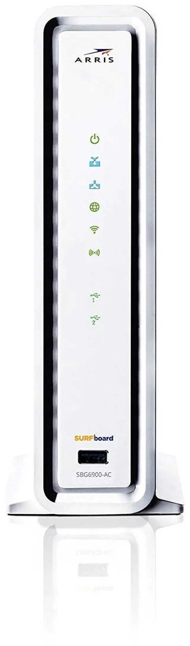 The ARRIS Surfboard SBG6900AC Cable modem & Wi-Fi router is the latest product available from ARRIS. An all-in-one, best-in-class device equipped with a DOCSIS 3. 0 cable Modem with 16 download and 4 upload channels Cable of speeds up to 686Mbps, 802. 11AC 1900 Mbps Wi-Fi dual Band router and 4-Port Gigabit Ethernet ports. Equip your home network with the most advanced modem & router available today to enhance your internet experience!