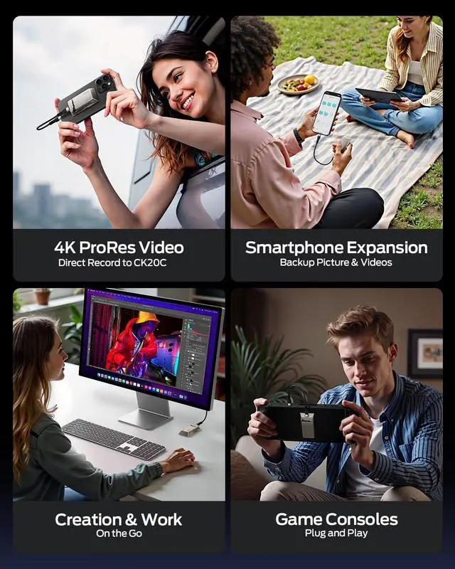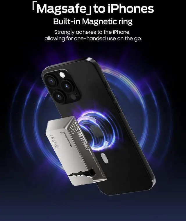 Instant Magnetic Attachment for iPhone 15/16Snap the SSD directly onto your iPhone with secure magnetic suction for on-the-go 4K/8K video recording and instant file access ^^ Blazing 2060MB/s Read Transfer large files in seconds with industry-leading speeds, ideal for 4K video editing, gaming, and professional workflows ^^ Global Tracking & Anti-Loss ProtectionIntegrated Apple Find My technology lets you locate your SSD worldwide via the Find My appperfect for travelers and creatives who need to safeguard critical data ^^ Ultra-Portable & Rugged Zinc Alloy Build Weighing just 100g with a shock-resistant zinc alloy casing, this SSD combines durability with pocket-sized portability for field use or travel ^^ Seamless Multi-Device Compatibility Works flawlessly with iPhone 15/16, PCs, Macs, and USB-C devices.