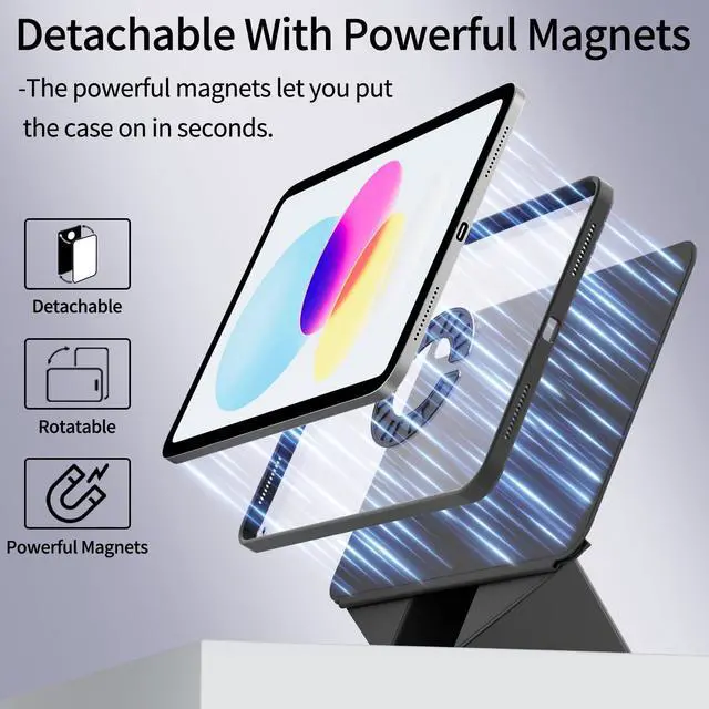 Detachable Magnetic Cover : The strong magnets in the cover of this iPad 10th Generation case make it easy to attach to the back case and fold it up into a stable stand with multiple landscape and portrait modes, or remove it completely for better ergonomics while gaming. And have a detachable magnetic pen holder, which are connected to each othe