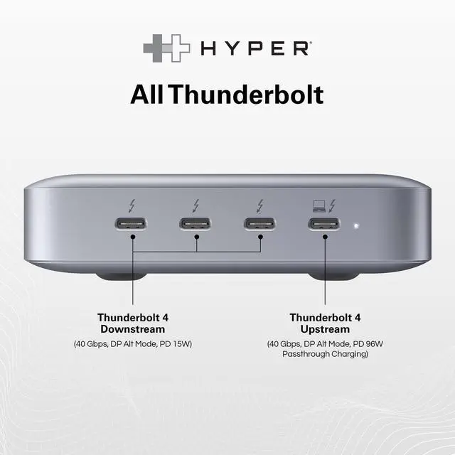 Thunderbolt users can daisy chain additional Thunderbolt devices to the laptop hub. ^^ BETTER GRAPHICS PERFORMANCE - 32Gbps PCIe data transfer provides 2x better graphics performance from TB4 enabled eGPUs. Connect one display with up to 8K 30Hz HDMI video or two displays with 4K 60Hz HDMI video. (Dual display support is not compatible with M1/M2 MacBooks. ) ^^ HYPER INNOVATION - HYPER creates award-winning, cutting-edge IT and mobile accessories that focus on compatibility with Apple, portable power, and connectivity.