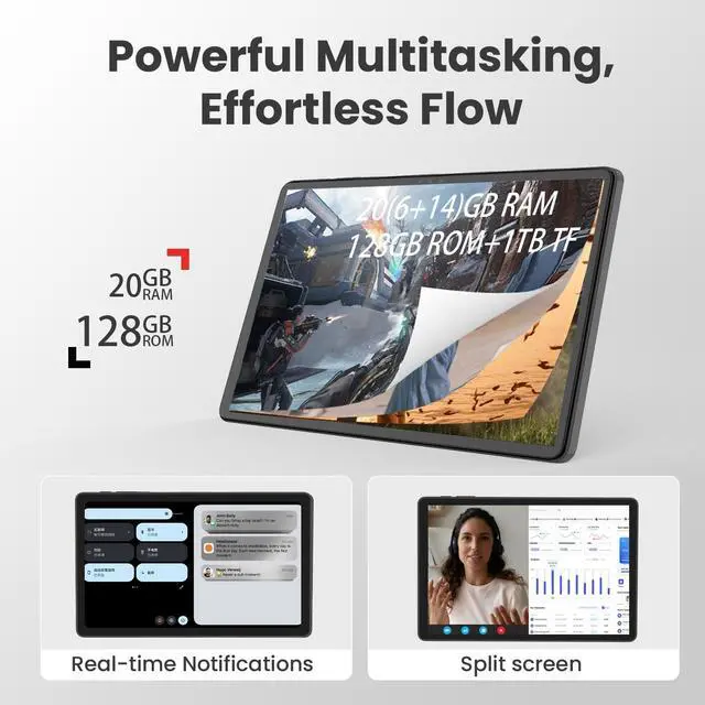 Processor & 20GB+128GB]: This tablet features an octa-core processor for blazing-fast performance, and 20GB of RAM for a seamless user experience. It also comes with 128GB of storage, expandable up to 1TB via a microSD card (not included). The pre-installed Google Play Store makes it easy to download apps and store massive amounts of data without worrying about running out of storage.
