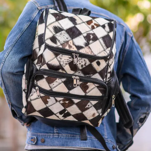 DescriptionChayell leather cowhide diaper bags for baby boy girls and small cowhide backpack for women keep US students and commuters stylishly organized, carrying laptops and books in comfort from first class to last meeting. Others bring broken zippers, weak straps, poor fit and fake leather. Chayell real cowhide backpack men and laptop backpack luxury offer lasting comfort, style and reliable space. Crafted from 100% genuine hair-on cow print diaper bag, this multipatch black cowboy diaper bag combines executive polish with individual style for discerning professionals. Multiple compartments and five zippered pockets keep laptops, documents, and essentials impeccably organized.