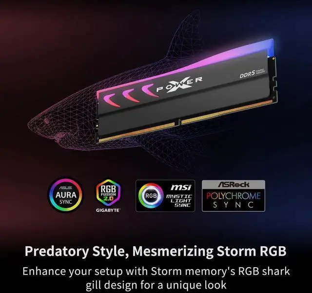 Silicon Power DDR5 64GB (2x32GB) Storm RGB 6000MT/s (PC5-48000) 288-pin CL38 1.35V UDIMM Desktop Memory Module RAM SU064GXLWU60BFDKEC Gray