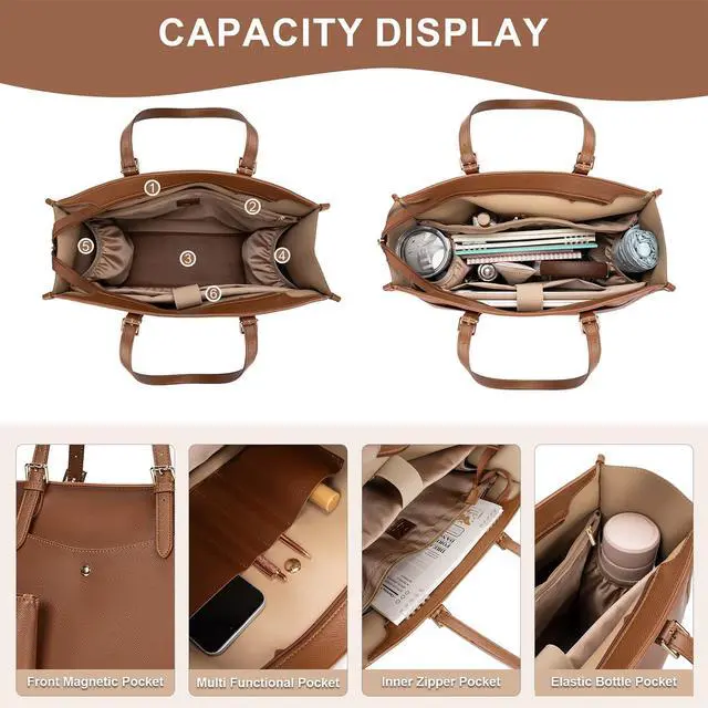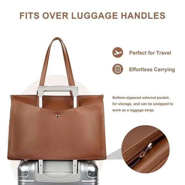 Elegant & Durable ^^ Soft PU Leather A structured tote bag for women crafted from water- and scratch-resistant PU leather, finished with a smooth top zipper and protective metal feet. Holds its shape through daily commutes. Approx. 17" 5.5" 12.2". ^^ Spacious & Organized ^^ Padded Laptop Sleeve Purpose-built as a laptop bag for women: a thick, padded laptop compartment with a secure hook-and-loop strap, plus multiple pockets for charger, files, and a water bottle. Fits most 15.6" laptops. Bonus wristlet (approx 9.6" 6.7" ) for phone, keys, cards, and cosmetics. ^^ Lightweight & Versatile ^^ Easy to Style Weighs just 1.98 lb while balancing capacity with a clean, minimalist look. A refined choice among everyday work bags, pairing effortlessly with casual or professional outfitsperfect for work, business trips, errands, and commuting. ^^ Multiple Colors ^^ Gift-Ready ChoiceFrom campus to boardroom, this tote bag for women delivers style and function. Pick your shade, then use it as a laptop bag for women or professional work bag. A polished large tote bag that makes an easy, elegant gift. ^^ Professional Services from BAGOKWe are committed to providing exceptional customer service. We also offer prompt after-sales support to ensure a seamless shopping experience. Feel free to reach out to us with any inquiries about our collection and more.