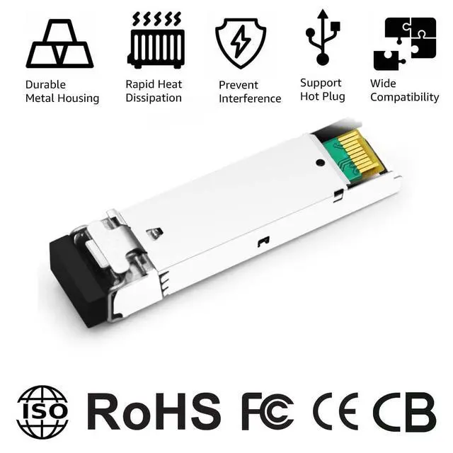 the 1000BASE-SX SFP Optical Transceiver Module supports up to 550m link lengths over multi-mode fiber (MMF) using a wavelength of 850nm via an LC connector. Max. Power Consumption 0.8W Allowing for Prolonged Service Life, Commercial Temperature Range 0 to 70C (32 to 158F) ^^ Tested in Targeted Switches for Superior Performance, Quality, and Reliability. We owns compatibility LAB facilities to meet the EEPROM coding and writing requirements with various brands of the latest and advanced networking equipments to ensure the compatibility. ^^ Real Time Digital Optical Monitoring Capability for Strong Diagnostic Capabilities ^^ Hot Pluggable SFP MSA and RoHS Compliant to Maximize Uptime and Simplify Maintenance ^^ Compliant to IEEE 802.3 z Gigabit Ethernet and SFF-8472 with duplex LC receptacle