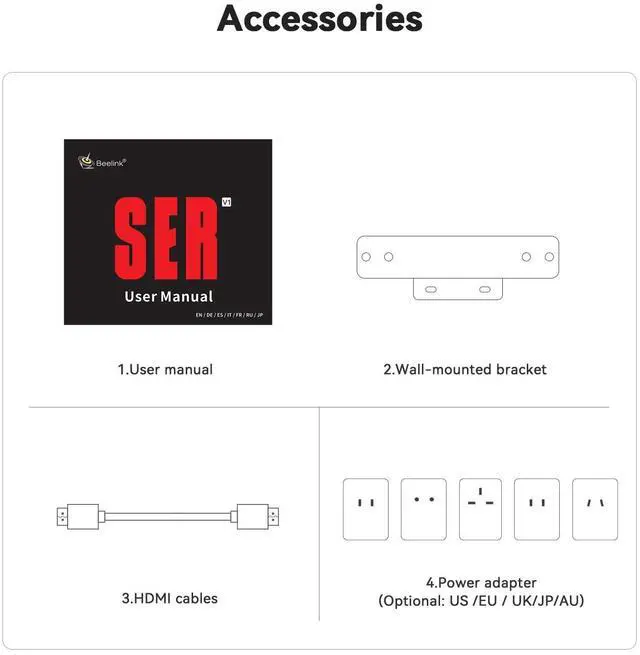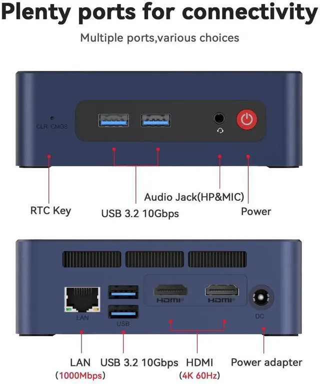 Compact & Rich InterfaceThe beelink SER3 comes with 4 x USB 3.2 Gen2 (10Gbps) ports for high-speed data transfer, 1 x DC Jack, 2 x HDMI ports for multi-screen setups, 1 x RJ45 1000M Ethernet port for s