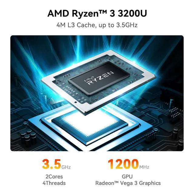 Powerful Performance AMD Ryzen 3 3200U ProcessorBeelink SER3 3200U mini pc is powered by the AMD Ryzen 3 3200U processor (2C/4T, up to 3.5GHz turbo frequency) with 4MB smart cache, the Beelink SER3 Mini PC delivers stable, low-latency performance. It boasts robust loading and data processing capabilities, ensuring a smooth experience for daily multitasking, office work, media streaming, and light creative tasks