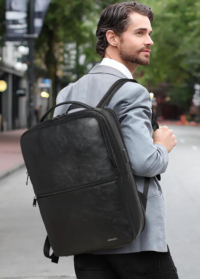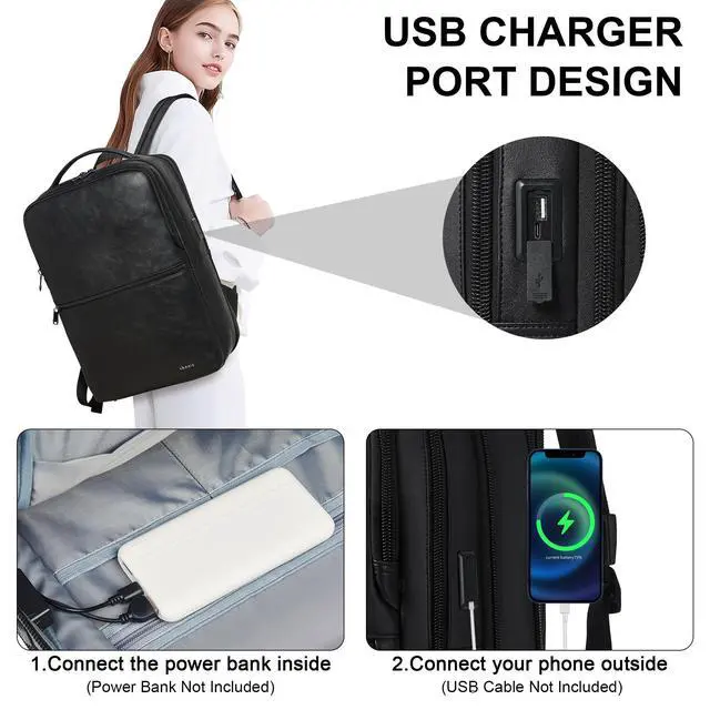 HIGH QUALITY LEATHER BACKPACK: The commuter backpack is made from PU leather, which is light and durable, so the backpack laptop can deal with a variety of scenarios, such as sunny days, light rain and snow. Airflow back design with soft breathable padding material, gives you maximum back support, and the ergonomic shoulder straps can effectively reduce strain on the shoulders. Good choice for a business laptop backpack, backpack for travel, backpack for laptop, or college backpack for men and women ^^