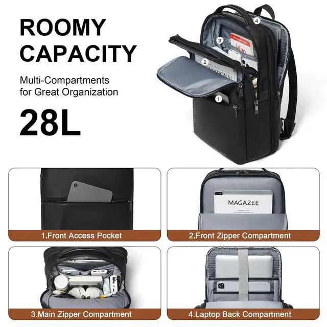 CONVENIENT TRAVEL LAPTOP BACKPACK: This business backpack with charging cable inside and 2 charging ports (USB and Type-C) outside, providing a more convenient way to charge your phone. The convertible back pocket of this computer backpack can be used as a luggage sleeve and attached to the raised handle of the suitcase by unzipping the pocket, making your working, journey, and traveling more convenient. The slim laptop backpack with charger is an ideal choice for business trips ^^