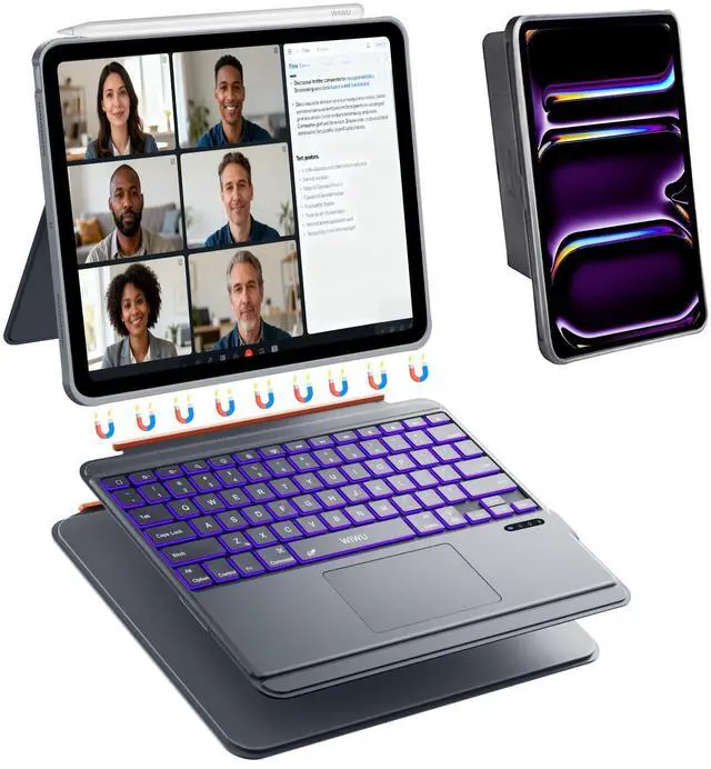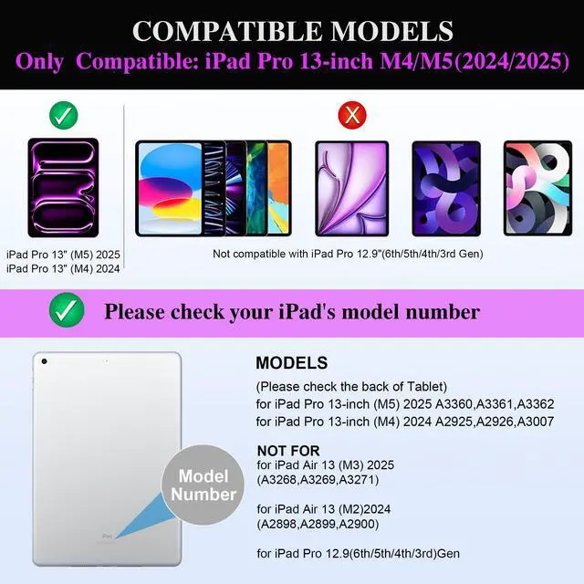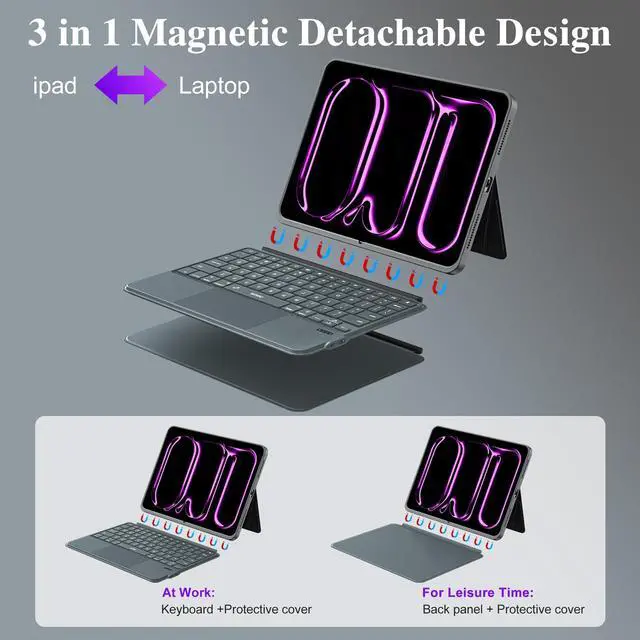 Design: Detachable magnetic ipad 13 pro case with keyboard stand, strong magnets secure stable attachment. Instantly transforms iPad case into a typing keyboard or adjustable viewing stand. Suitable for movies, video calls and meetings. Ideal for office travel and outdoor adventures. PU Leather full-edge coverage, protects iPad from drops and scratches ^^ Slim Design &
