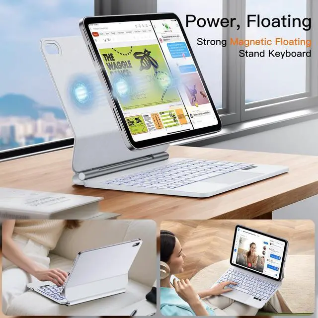 (Note: This product is NOT suitable for iPad Pro 11 inch & iPad Air 11-inch. Please verify your tablet model before purchase. ) ^^ EFFICIENCY, UNLOCKEDOur 6-Row keyboard puts media controls, brightness, and shortcuts at your fingertipsinstantly. Why press two keys when one will do? With a full 6th row of dedicated keys, you skip the Fn combos, no more hidden functions, get to work 41% faster ^^ See EverythingTired of deciphering blinking lights? Our Magic Keyboard features a crisp, integrated LED Display that puts all the essential information right in front of you. See the exact battery percentage, know your Bluetooth connection status, check Caps Lock, and monitor charging progress at a glance ^^ Bluetooth 5.3 with Dual-ChannelBluetooth 5.3 delivers a faster, more stable connection with lower latency. Dual-channel technology allows you to pair with 2 deviceslike your iPad and phone. This is multitasking made effortless, keeping you in your flow whether youre working, messaging, or creating ^^ PRECISION TOUCHPADExperience smooth control with our professional trackpad. With PixArt sensor and featuring 5-point multi-touch, it enables multi gestures for effortless navigation.