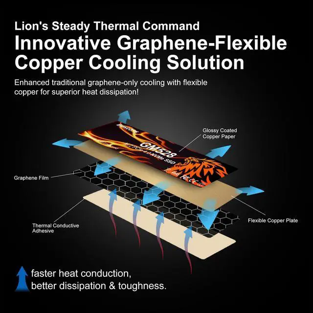 NOVEL GRAPHENE-COPPER COOLING SOLUTION: Dedicated graphene-copper cooling for 2280 NVMe SSD, ensuring PCIe SSD stays cool under AAA games. Sustains near-peak read speeds, instant boot, lag-free multitasking. ^^