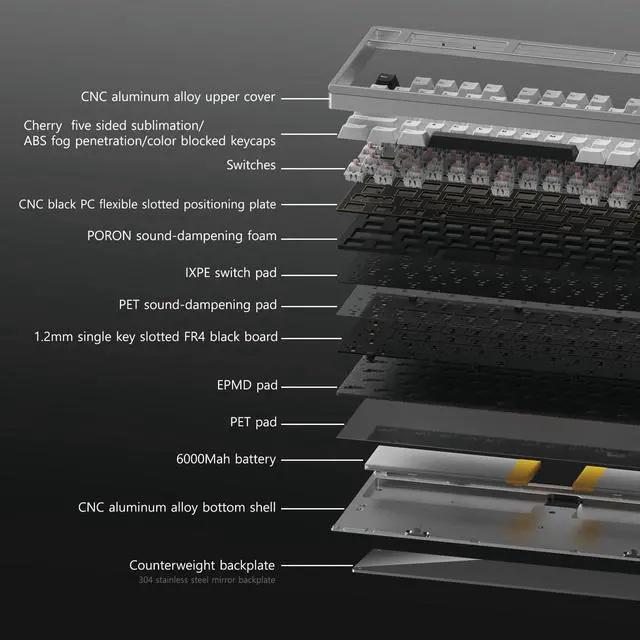 • Enjoy a clean, quiet, and soft typing feel with a full-stack gasket mount system and five-layer sound-dampening: PORON foam, IXPE switch pads, PET acoustic sheets, EPDM underfill, and PET insulation pad. These work together to eliminate ping noise and deliver a deep, satisfying soundideal for office or late-night use.